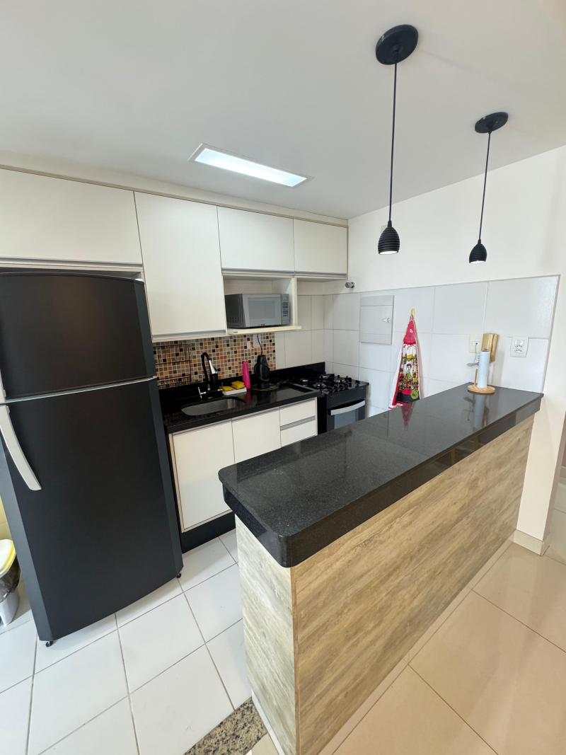 -Cozinha: Geladeira, fogão, maquina de lavar.