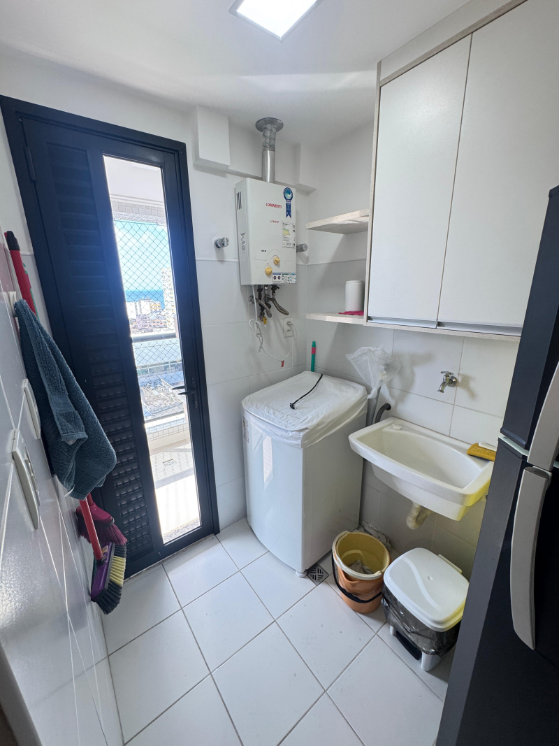Apartamento vista mar, excelente localização, 1/4 com armário embutido, 1 sala, 1 banheiro, 1 cozinha e área de serviço com armários e varandão.