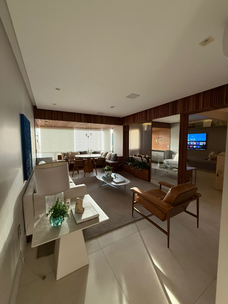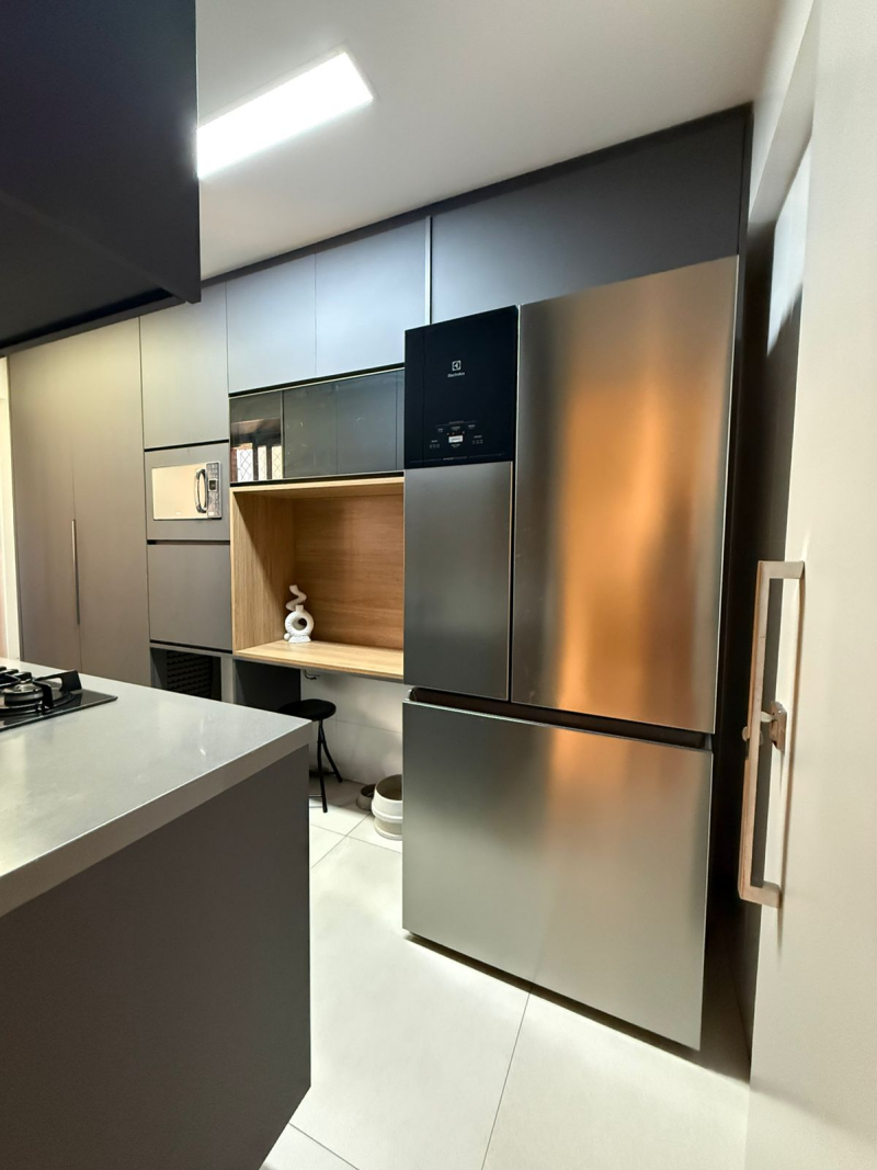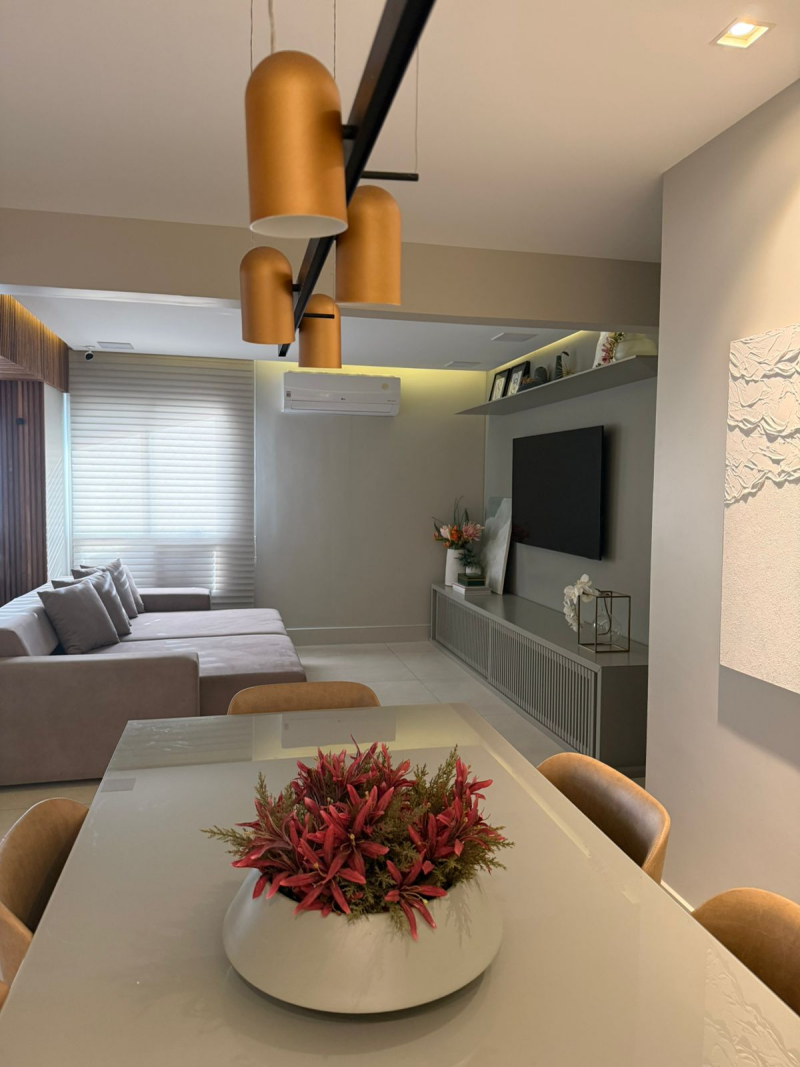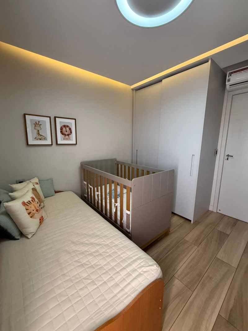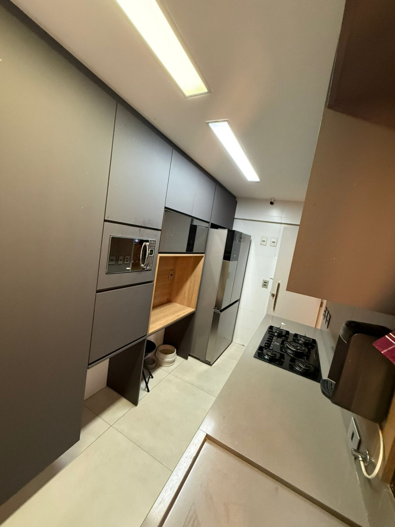 Apartamento de 03 quartos com 02 suites, sala de estar e jantar, varanda, lavabo, gabinete, cozinha, área de serviço, dependência completa de empregada, 02 garagem, armários, central de gás, elevador, interfone e portaria 24hs.