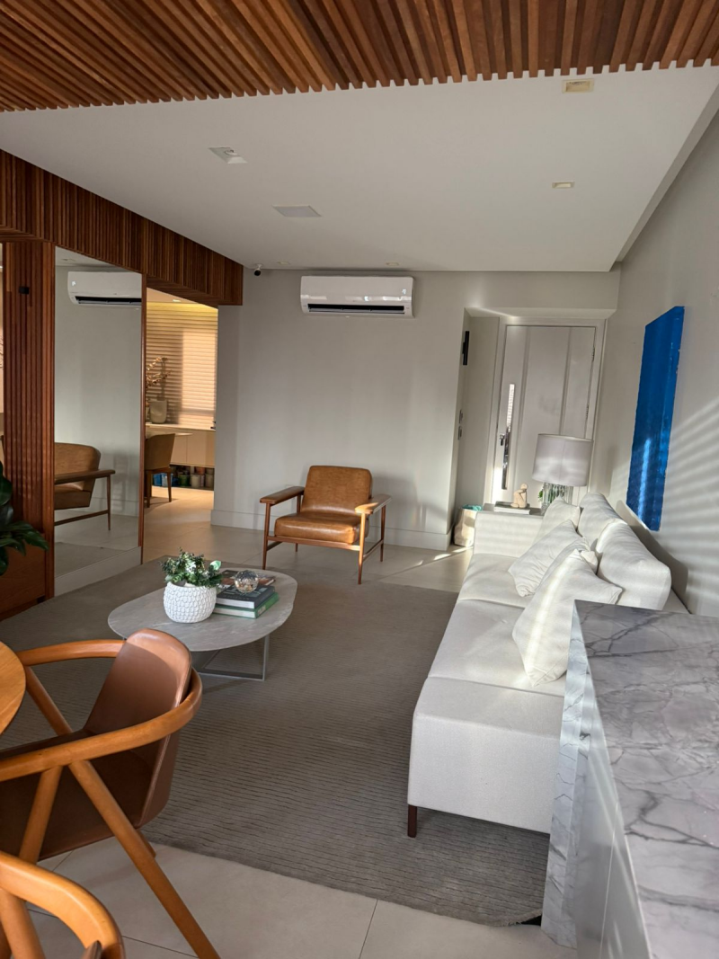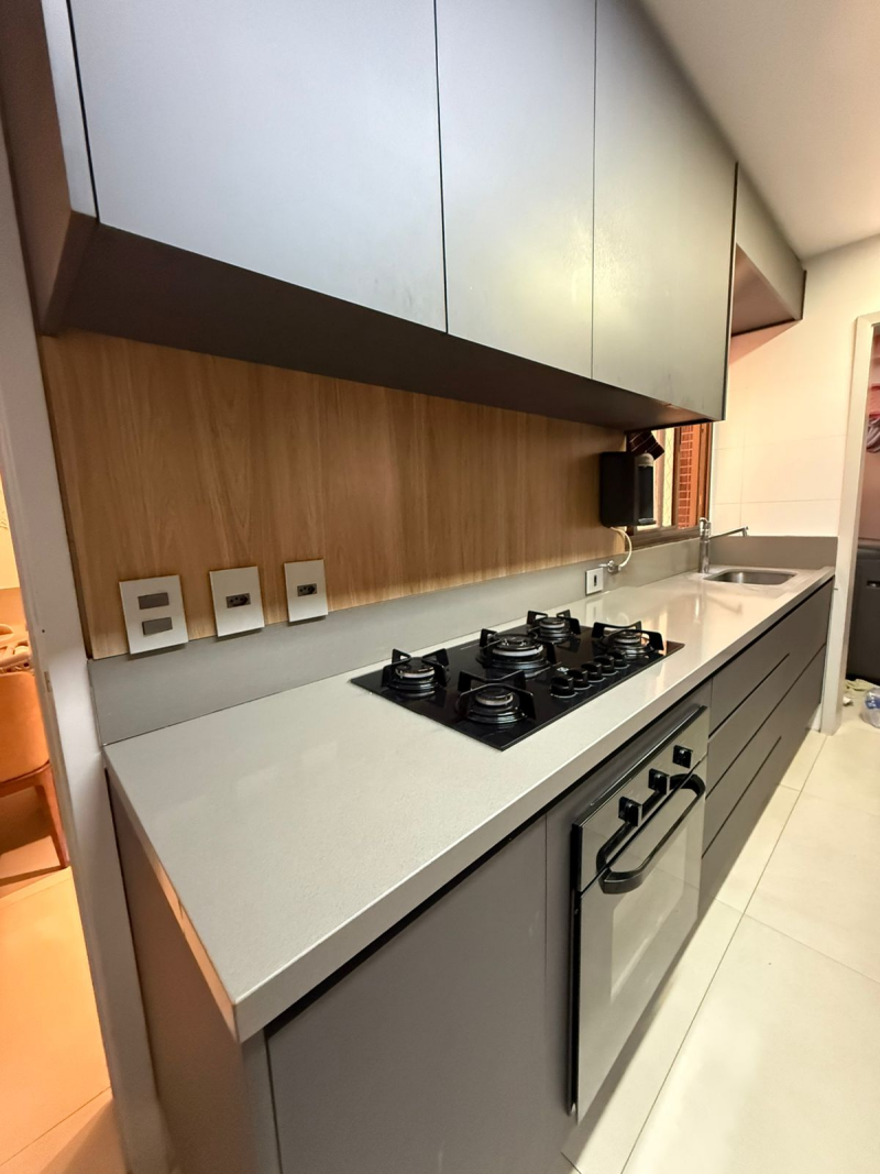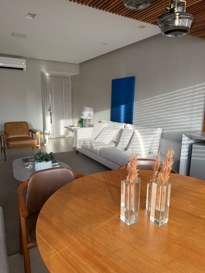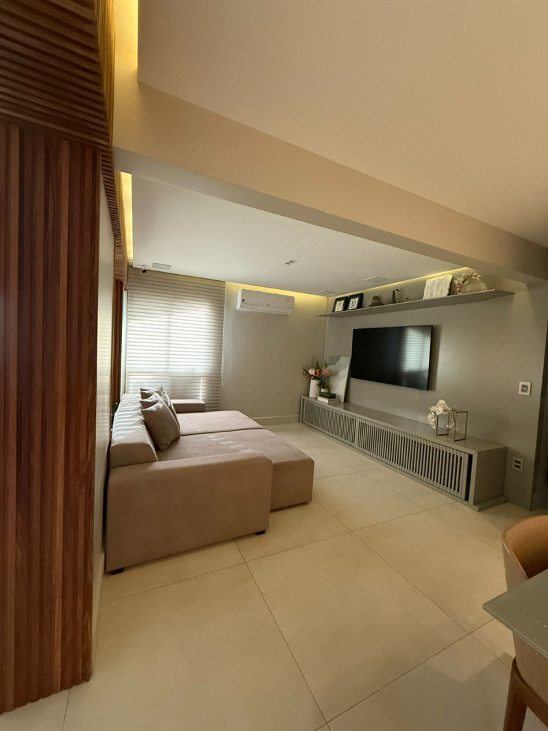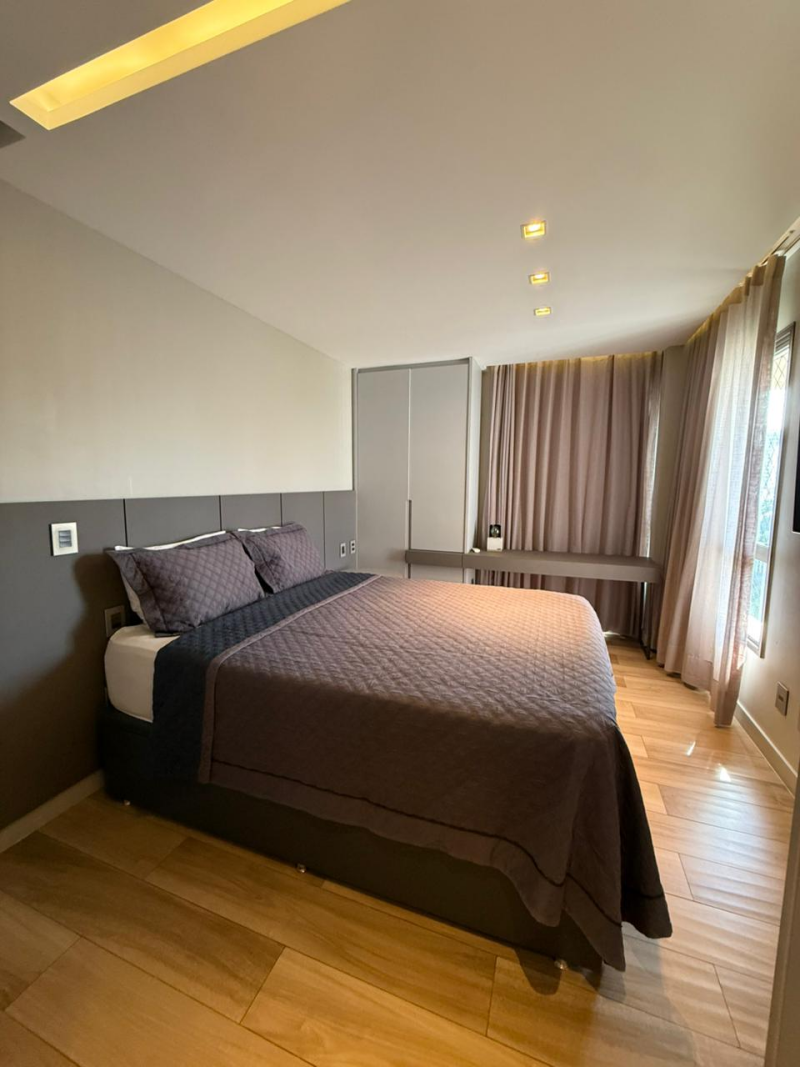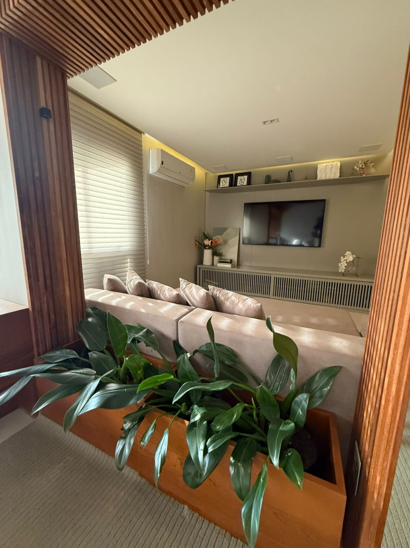 Apartamento de 03 quartos com 02 suites, sala de estar e jantar, varanda, lavabo, gabinete, cozinha, área de serviço, dependência completa de empregada, 02 garagem, armários, central de gás, elevador, interfone e portaria 24hs.