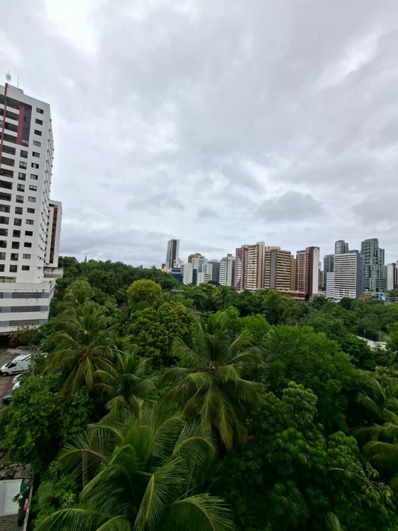 Apartamento de 2/4, sala, varanda, sanitário social, cozinha, área de serviço, sanitário de serviço, central de gás, nascente, elevadores.