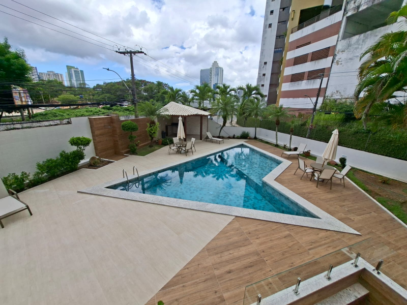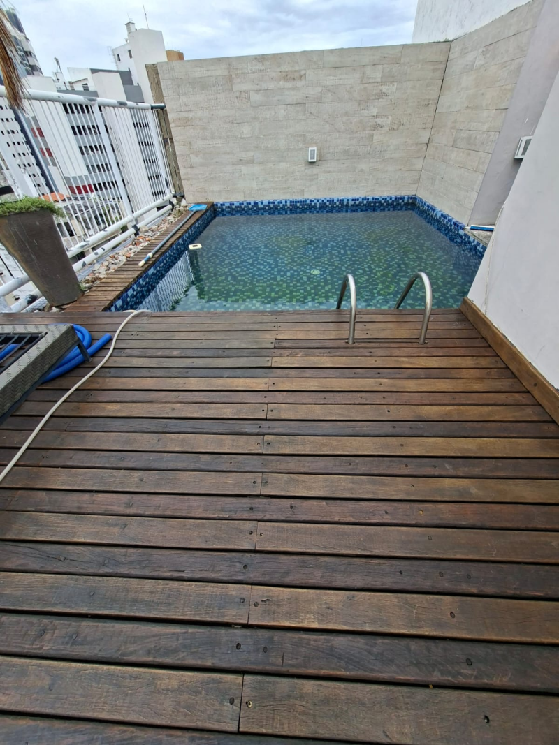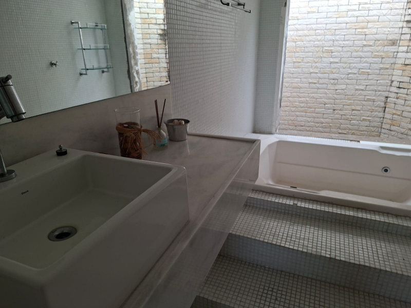 No 2º pavimento: Sala ampla, cozinha, sanitário com banheira de hidromassagem e piscina com deck.