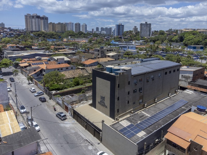 Prédio de 4 pavimentos, com terraço e um anexo no pavimento térreo.