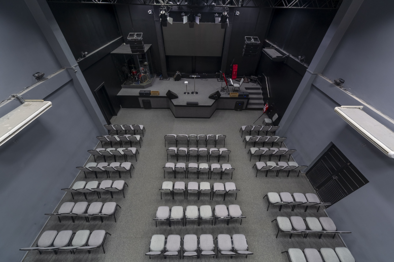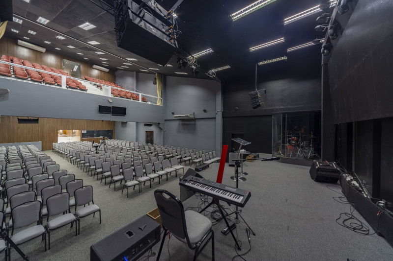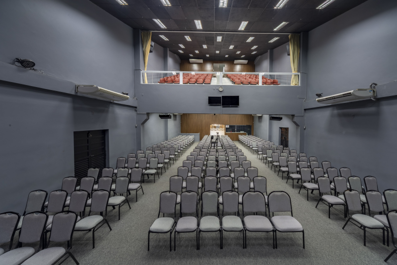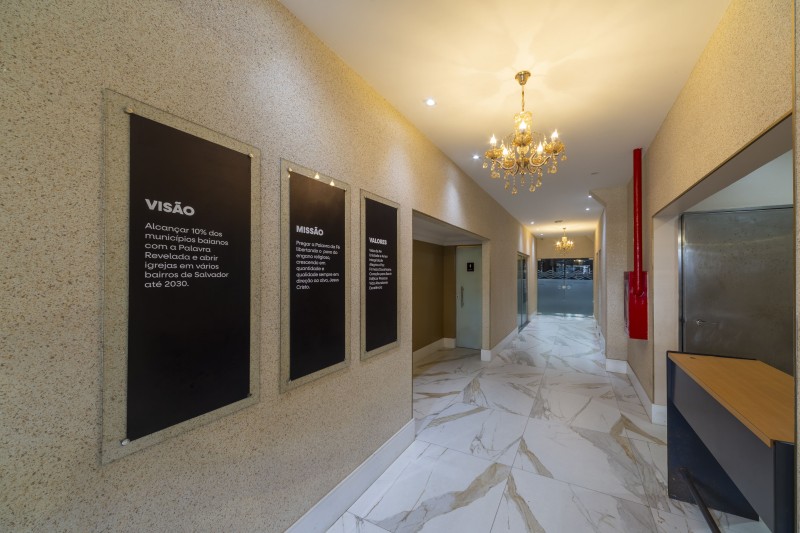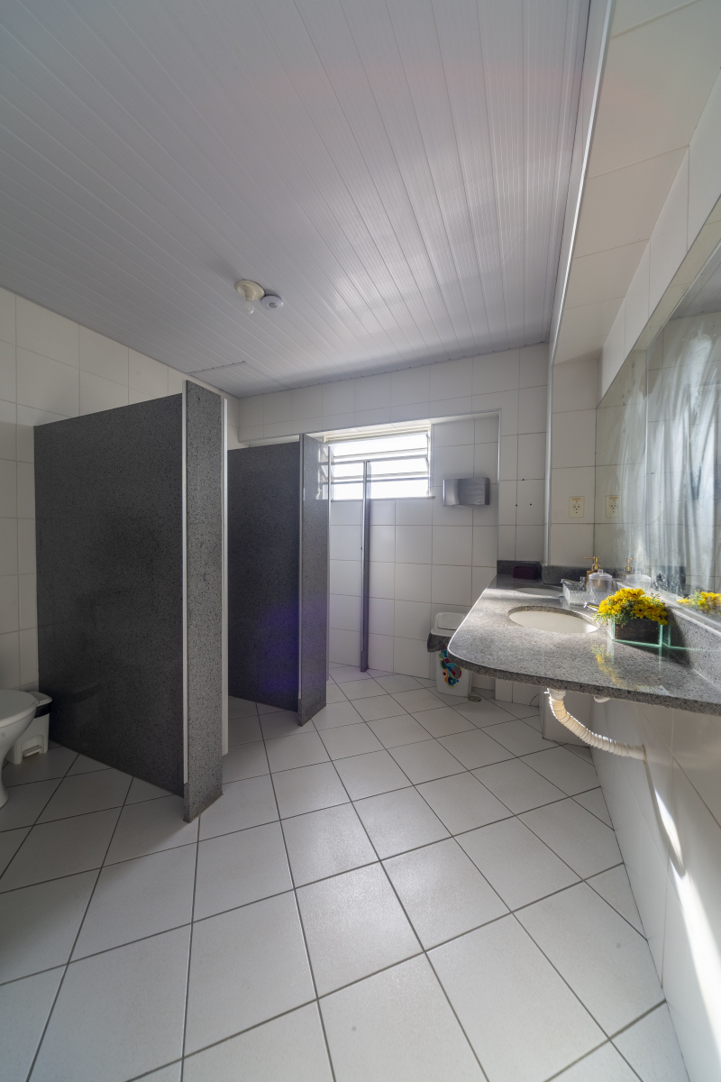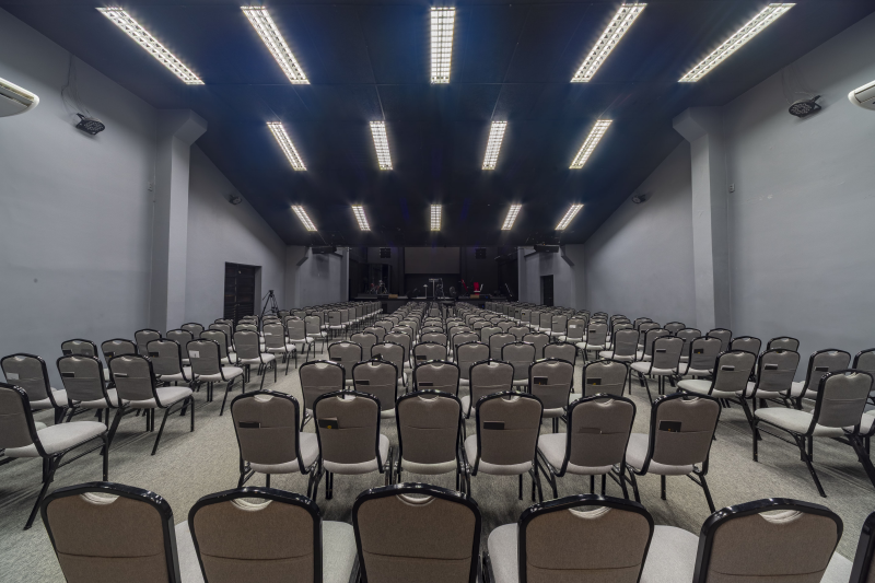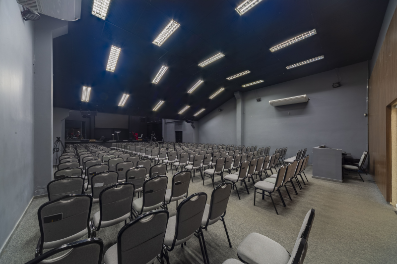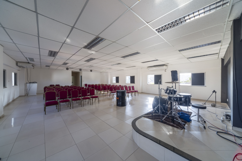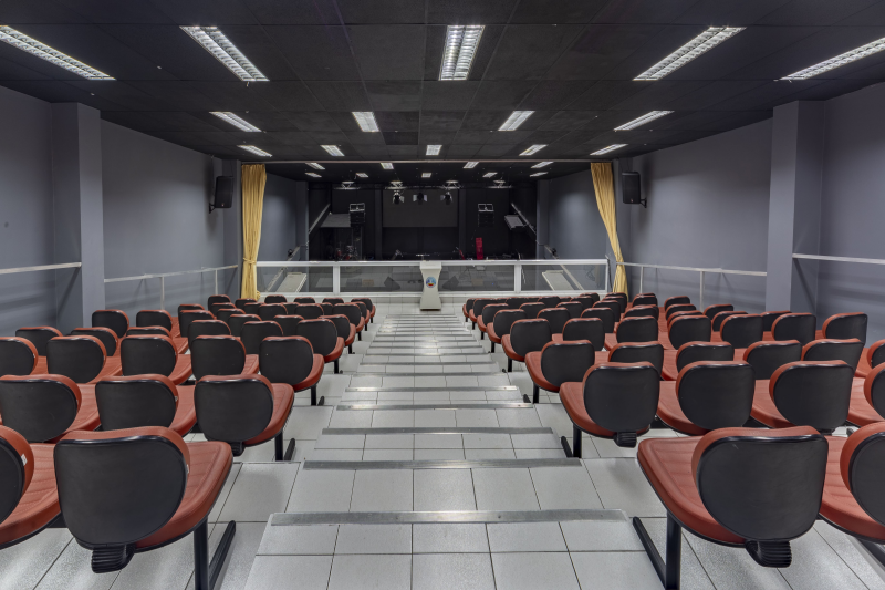 - Possuem 5 vagas de garagem com portões em alumínio, Entrada social, Hall social, Banheiro PNE, Banheiros masculino e feminino, Livraria, Sala de máquinas/quadros elétricos, Sala de reunião, Sala do financeiro, Templo principal com púlpito e Escada de acesso ao 1º pavimento.