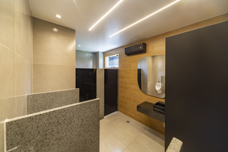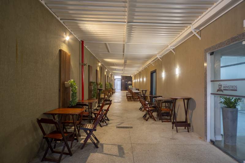 - Composto de área externa coberta, circulação, Sala de reunião, Sala da diretoria, Copa/cozinha e 3 depósitos.