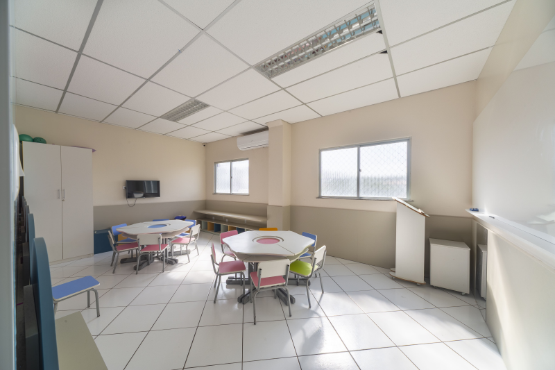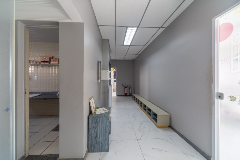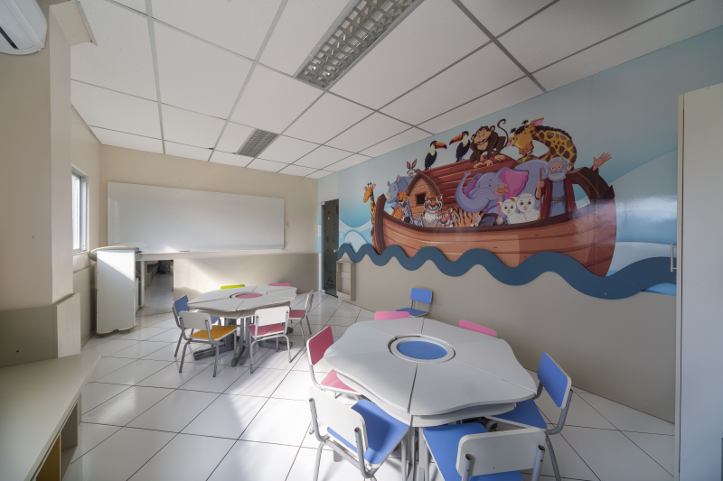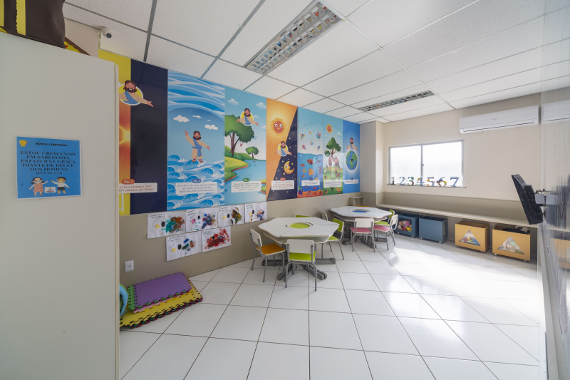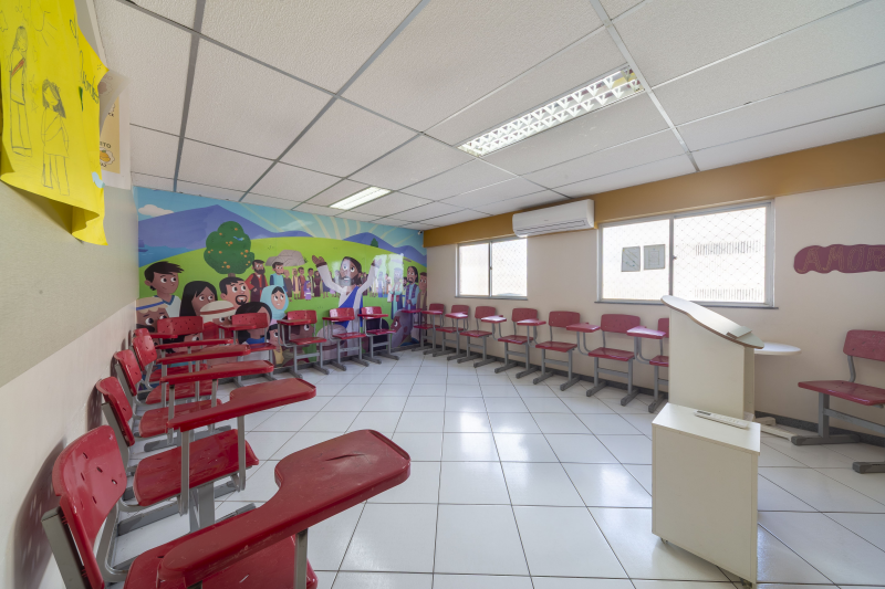 - Composto de escada de acesso, circulação, 1 banheiro completo, Banheiros masculino e feminino, 1 copa/cozinha, 9 salas e 1 auditório para jovens.