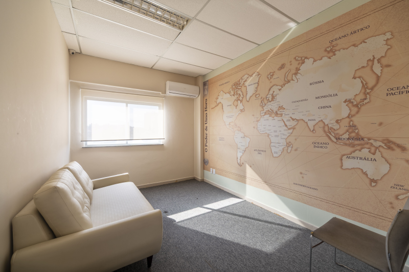 - Composto de escada de acesso, circulação, 4 salas e 1 mezanino com cadeiras.